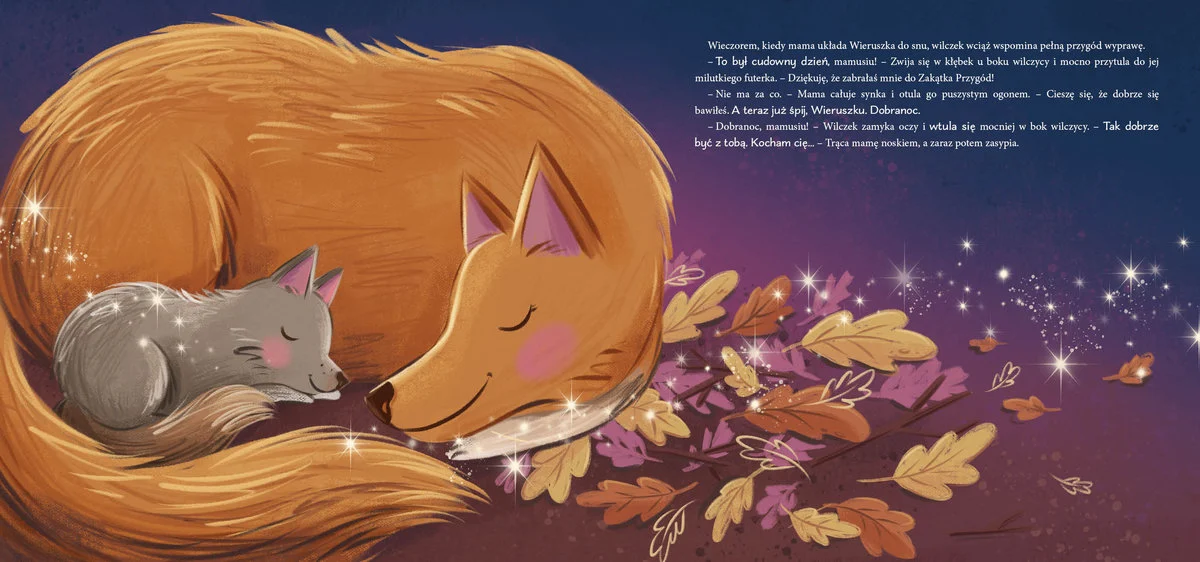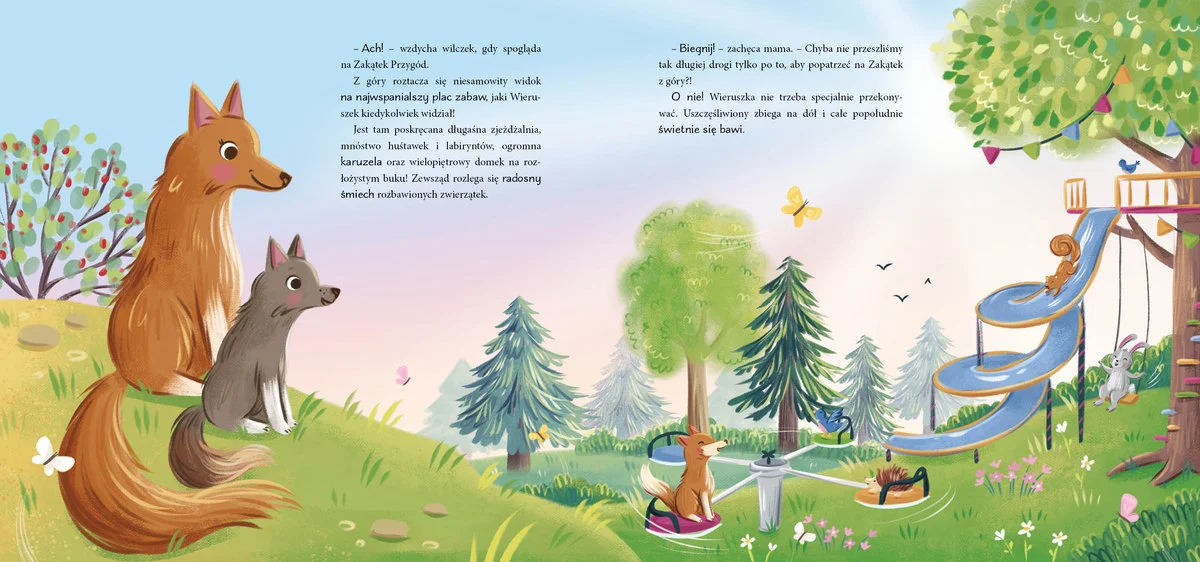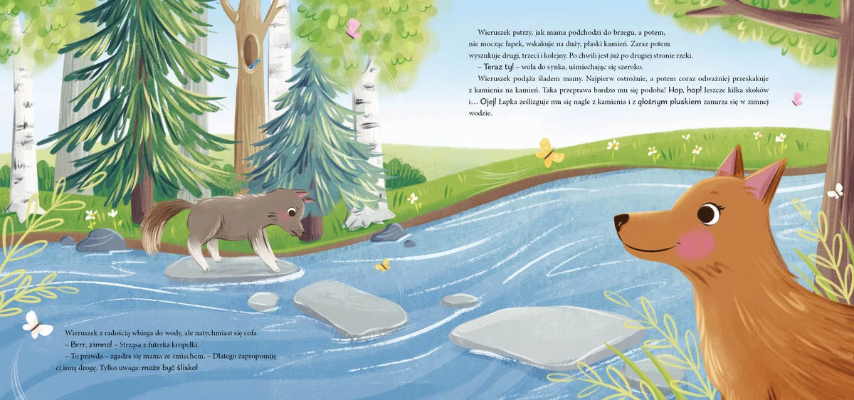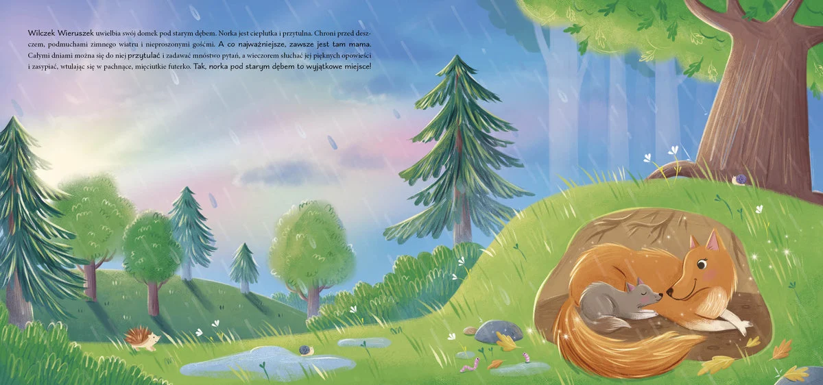 Poznaj Wieruszka - małego wilczka, który uwielbia spędzać czas z mamą. Kiedy wspólnie wybierają się na wycieczkę, maluch musi pokonać wiele przeszkód, a nawet zmierzyć się z niebezpieczeństwem. Na szczęście u jego boku zawsze jest kochająca mama, która nie pozwoli skrzywdzić synka. Wilczek zawsze może liczyć na jej wsparcie, dlatego tak dobrze mu być z mamą.
