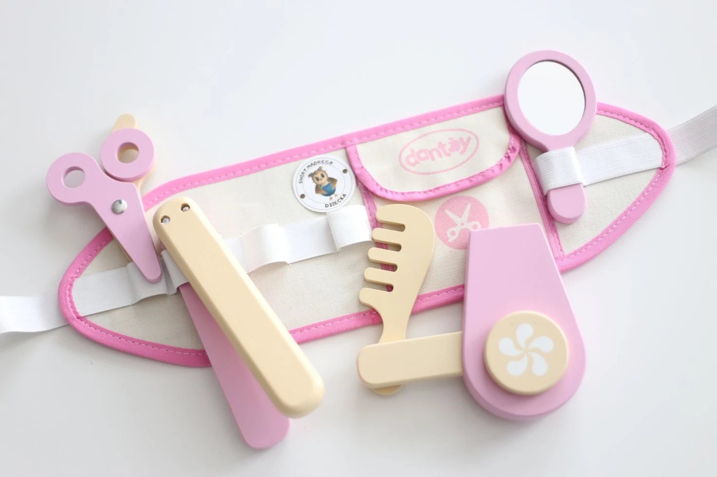 Drewniany pas fryzjerski duńskiej marki DANTOY to doskonała zabawa w domowy salon fryzjerski, w którym dzieci mogą tworzyć różnorodne scenki, rozwijając swoją wyobraźnię i umiejętności społeczne. Zestaw fryzjerski pozwala na odgrywanie ról, co jest świetnym sposobem na naukę codziennych sytuacji i rozwijanie umiejętności manualnych.