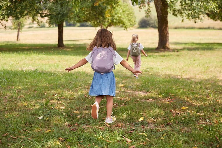 Wyjątkowo uroczy plecaczek 3D w kształcie królika niemieckiej marki LASSIG. Funkcjonalny, lekki i wygodny, idealny dla maluchów już od 2. roku życia, do przedszkola i na krótkie wycieczki. Królik ma piękny lawendowy kolor, długie odstające uszy, jasnoróżowy malowany nosek z wąsami, łatkę na oku, futerko oraz mały sterczący ogonek. Dość przestronna komora główna zapinana jest na suwak, posiada wewnętrzną kieszeń na butelkę z napojem oraz etykietkę z wizytówką, na której można zapisać imię dziecka i numer kontaktowy rodzica. Plecak uszyto z wysokiej jakości, trwałych materiałów, tylna ścianka jest lekko wzmocniona, ale nadal miękka w kontakcie z plecami dziecka. W górnej części znajduje się uszko do zawieszenia plecaka, np. na haczyku w szatni. Dość szerokie, grubsze i miękkie ramiączka zapewniają wygodę noszenia. Z przodu, na klatce piersiowej dodatkowo wyposażone są z w stabilizujące i odciążające plecy zapięcie na zatrzask – jego wysokość, podobnie jak długość ramiączek, można regulować i na bieżąco dopasowywać do wzrostu dziecka. Uszko, paski oraz ułatwiające dziecku samodzielne zapinanie sznureczki przy suwakach mają kolor szaroniebieski. Materiał plecaka łatwo się czyści i jest odporny na wilgoć.