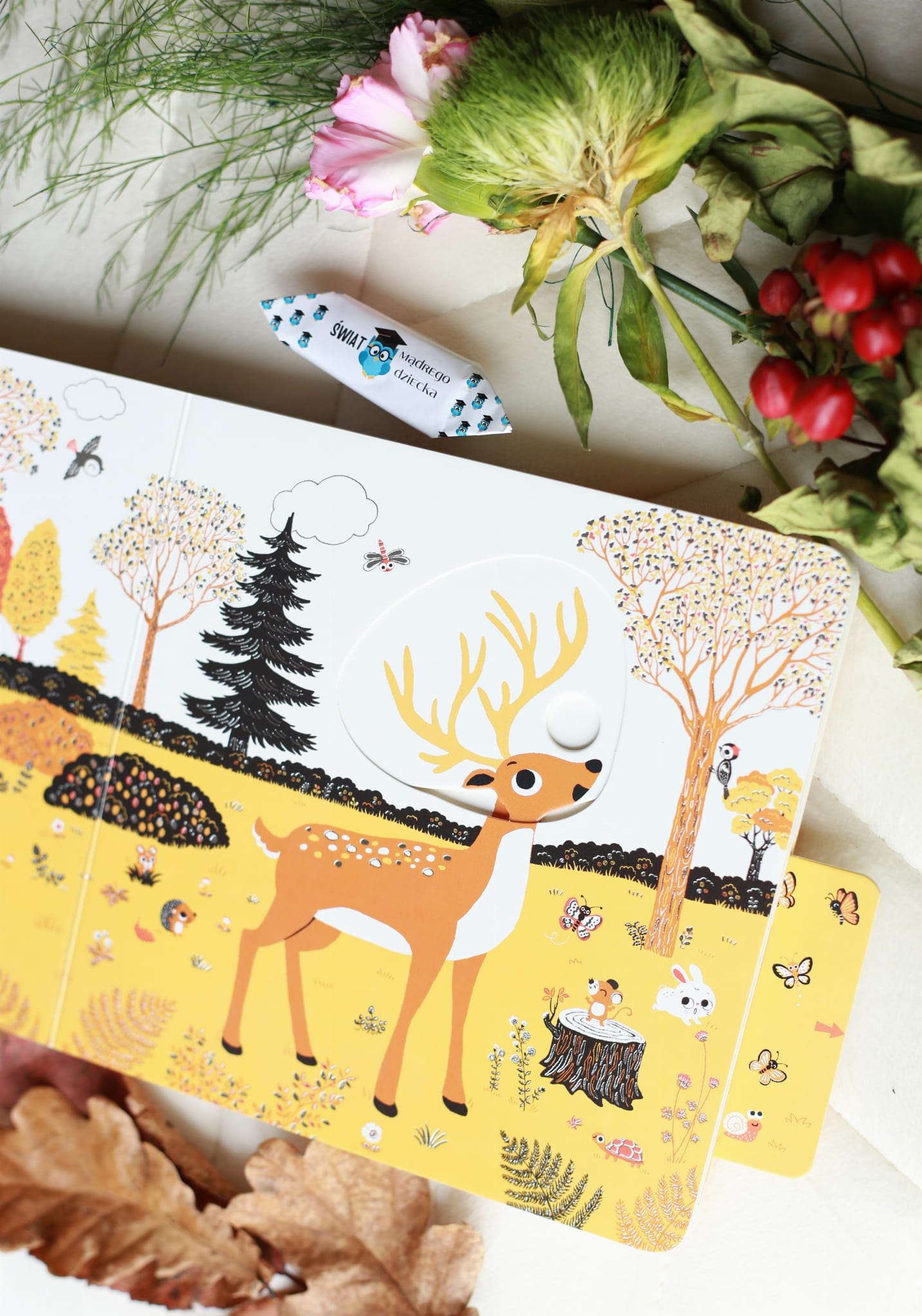 Z kolei ruchome elementy, wspierają zarówno sprawność manualną malutkich rączek dziecka, jak i ubarwiają czas spędzony z książką. Wystarczy przesunąć, pokręcić, popchnąć kartonowe elementy, by zmienił się obrazek. Radości z odkrywania świata nie będzie końca!