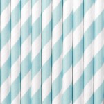 Słomki papierowe w kolorze jasnoniebieskim z białymi ukośnymi paskami to wspaniały dodatek do każdego przyjęcia! Podczas spotkania z bliskimi nie może zabraknąć posiłków, ani napojów, a słomki papierowe idealnie nadają się, by urozmaicić czas spędzony przy stole.